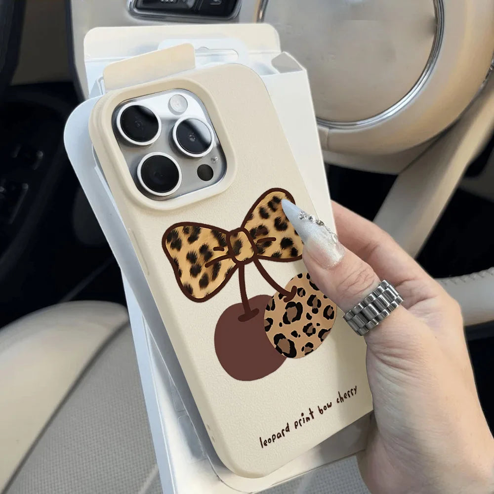 Cherry Leather Cute Heart Bow Cover Phone Case