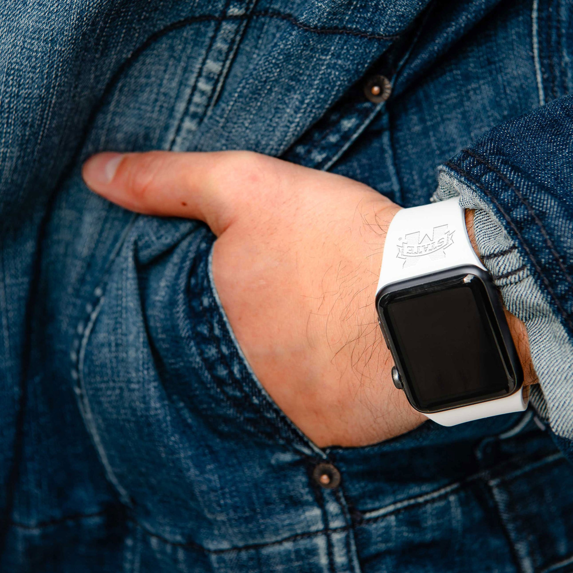 Premium quality Engraved Apple watchband is made using durable silicone and modern laser technology. The flexible silicone provides a smooth comfortable feel and dual pin clasp ensures added security. The engraved team logo provides a subtle contrast with the band.