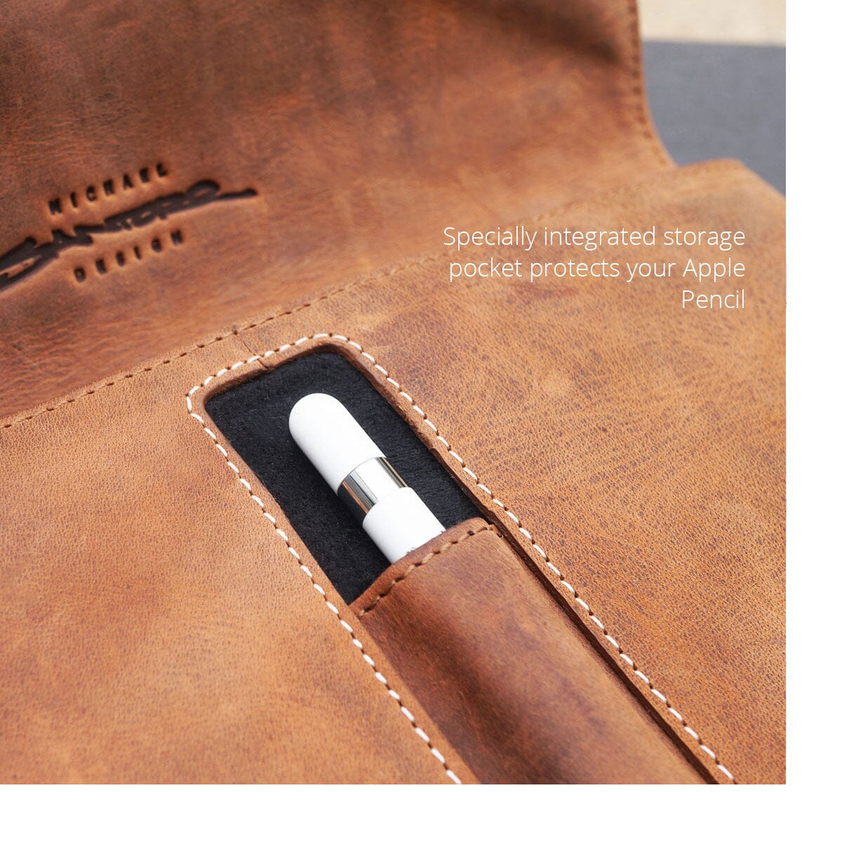 The Pencil is stored safely and securely under the flap and out of harm's way. A solution like this is far superior to something like an elastic loop sewn to the outside of the case hoping the Pencil doesn't slip out. The best crossbody bag for iPad is one you can count one day in and day out for many years.